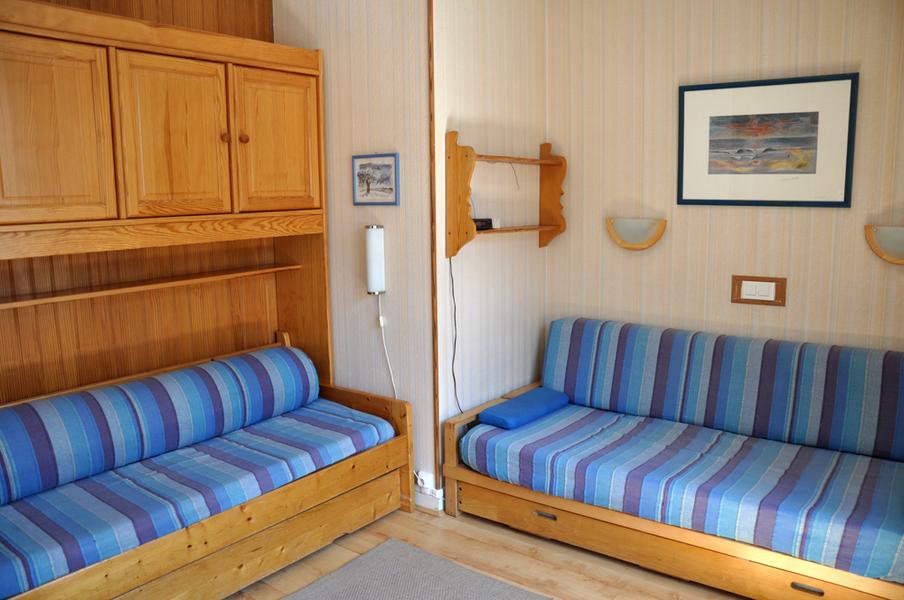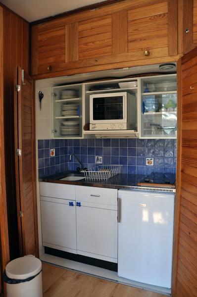 Coin alcôve (séparé du coin cuisine par une porte coulissante) : 1 canapé gigogne 2 x 80 cm + 1 canapé lit pour 1 personne de 90cm, 1 télévision.