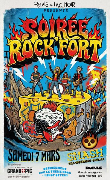 Soirée Rock’Fort, ambiance survoltée avec le concert de Smash The Offspring tribute, dégustez des gnocchis de légumes sauce Rock’Fort et venez déguisé sur le thème du rock pour une nuit festive, gourmande et 100% électrique !
